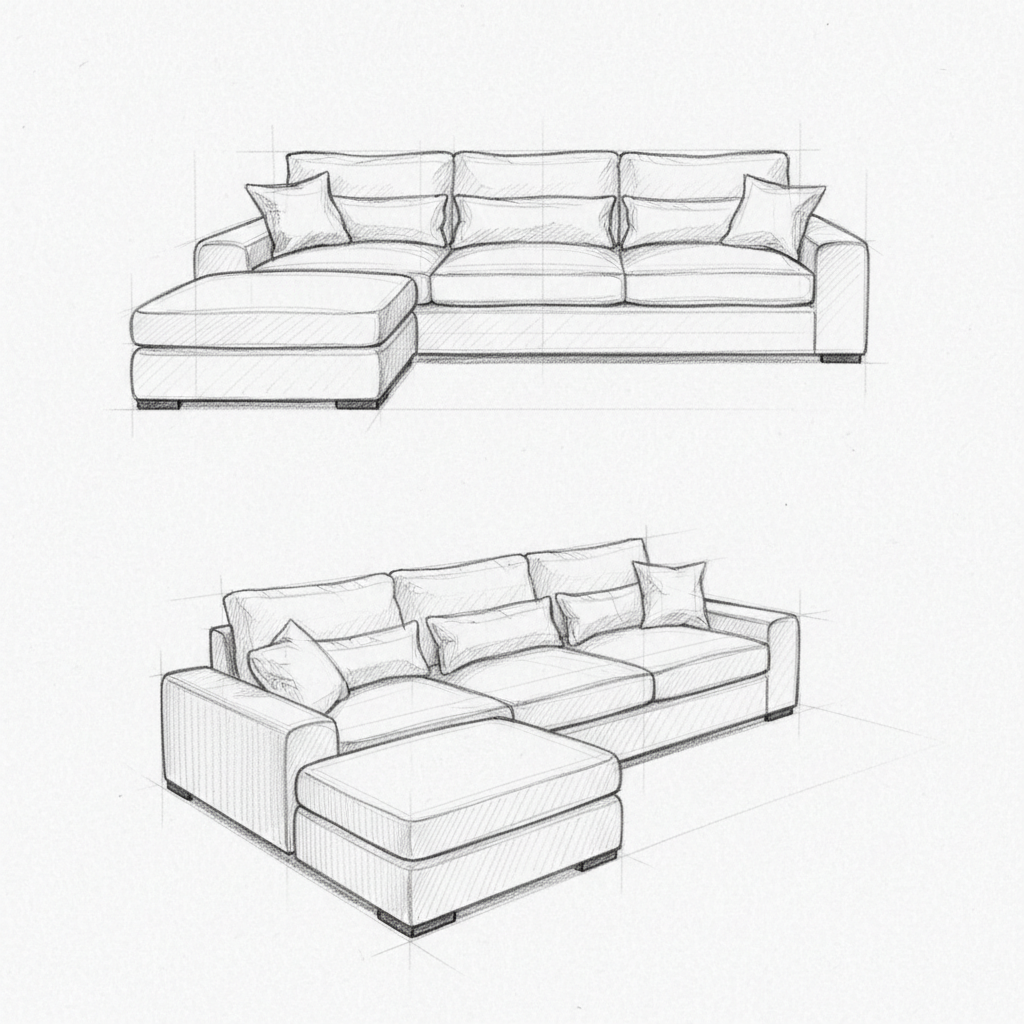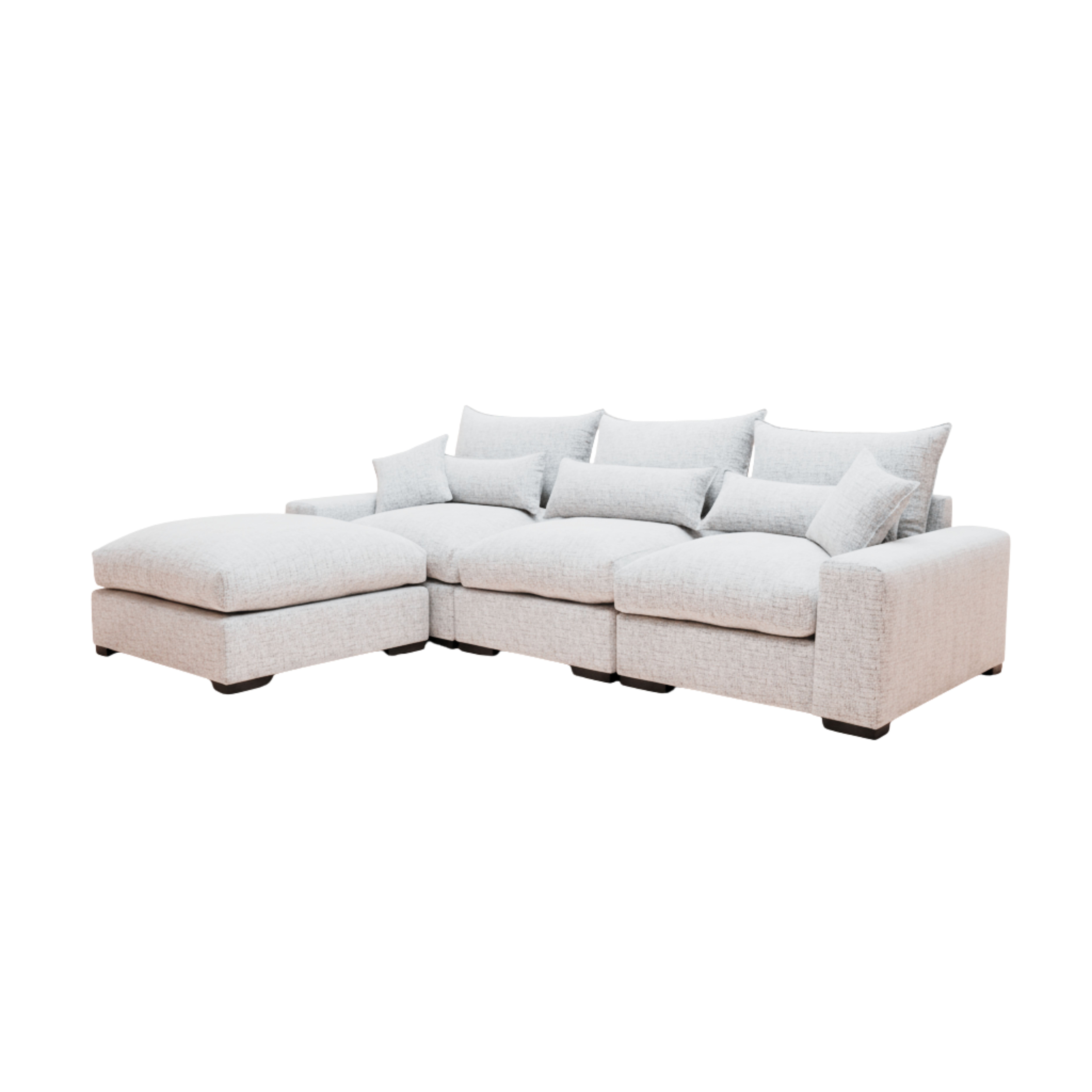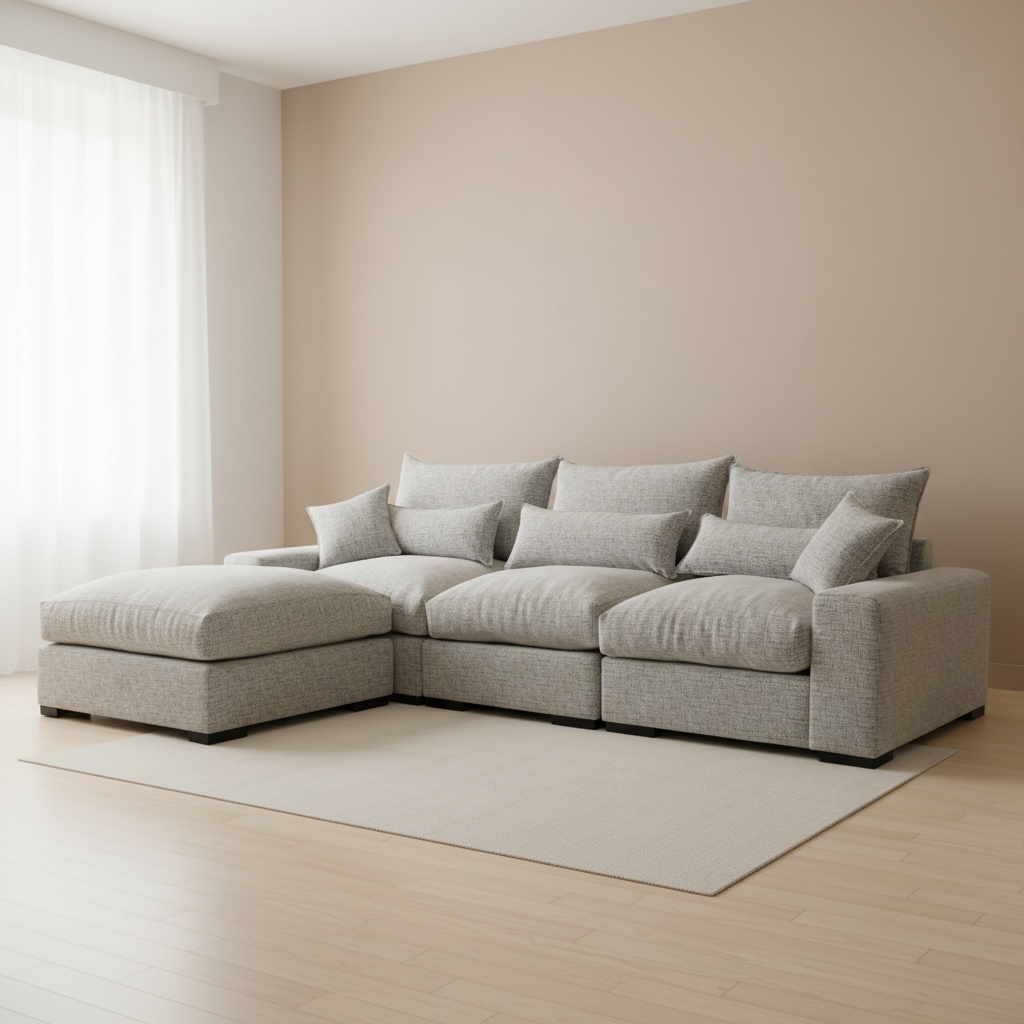 - Design: A versatile modular L-shape design featuring a detached ottoman and oversized seating blocks, creating a generous and flexible layout for high-end lounging.