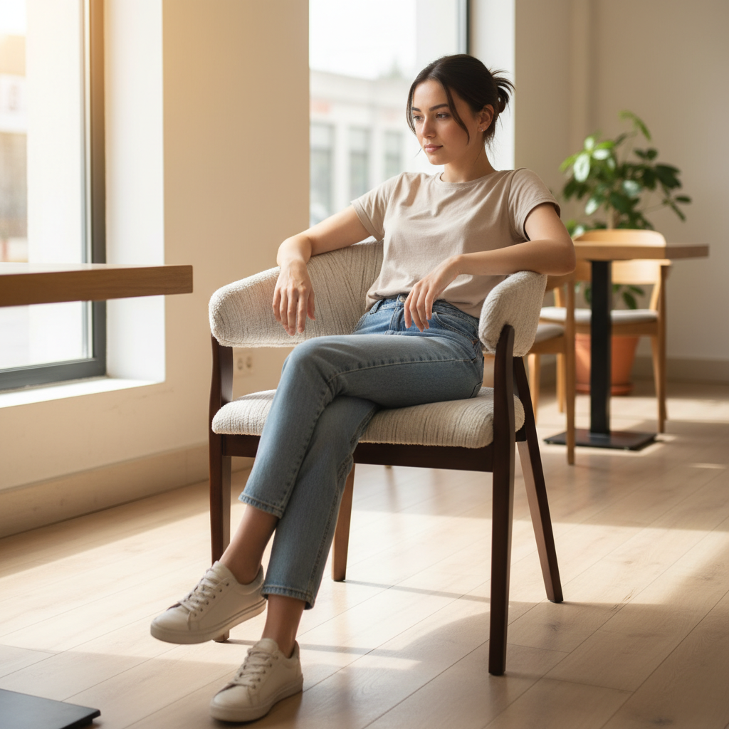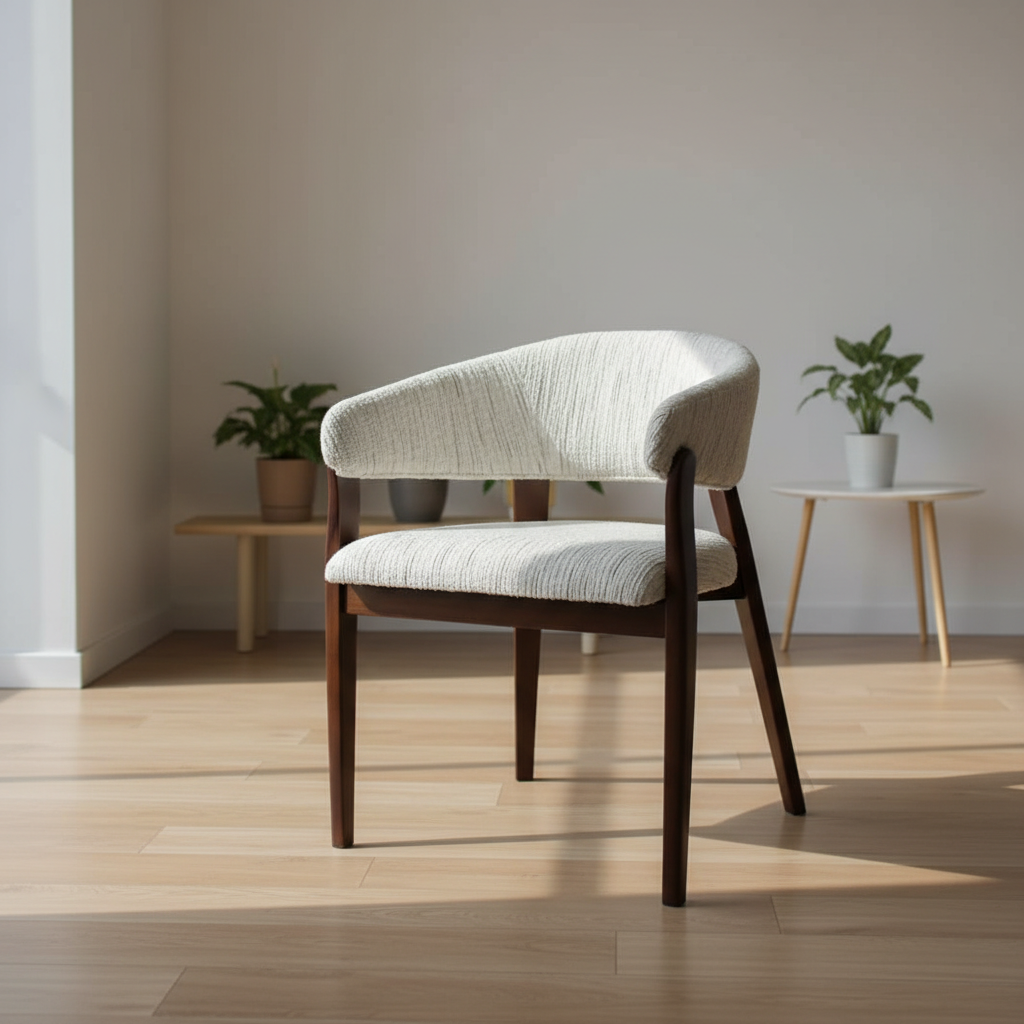 - It is built on a sturdy solid wood frame with a rich dark finish that enhances its sense of durability and elegance. The seat and backrest are upholstered in high-quality fabric with a soft texture, offering both comfort and refinement.