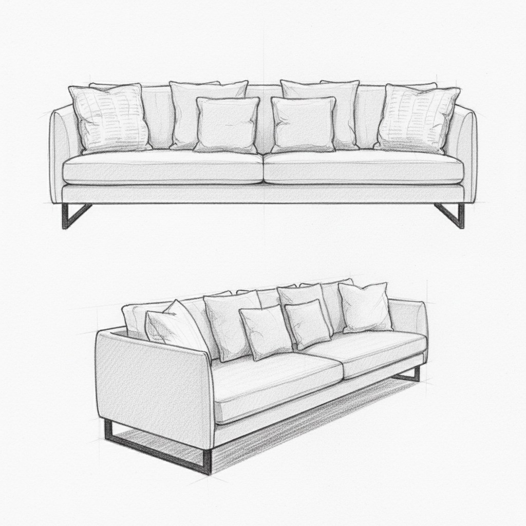 - Design: A contemporary, extra-long linear sofa featuring a streamlined low-profile silhouette and integrated slim track arms for a clean, modern aesthetic.