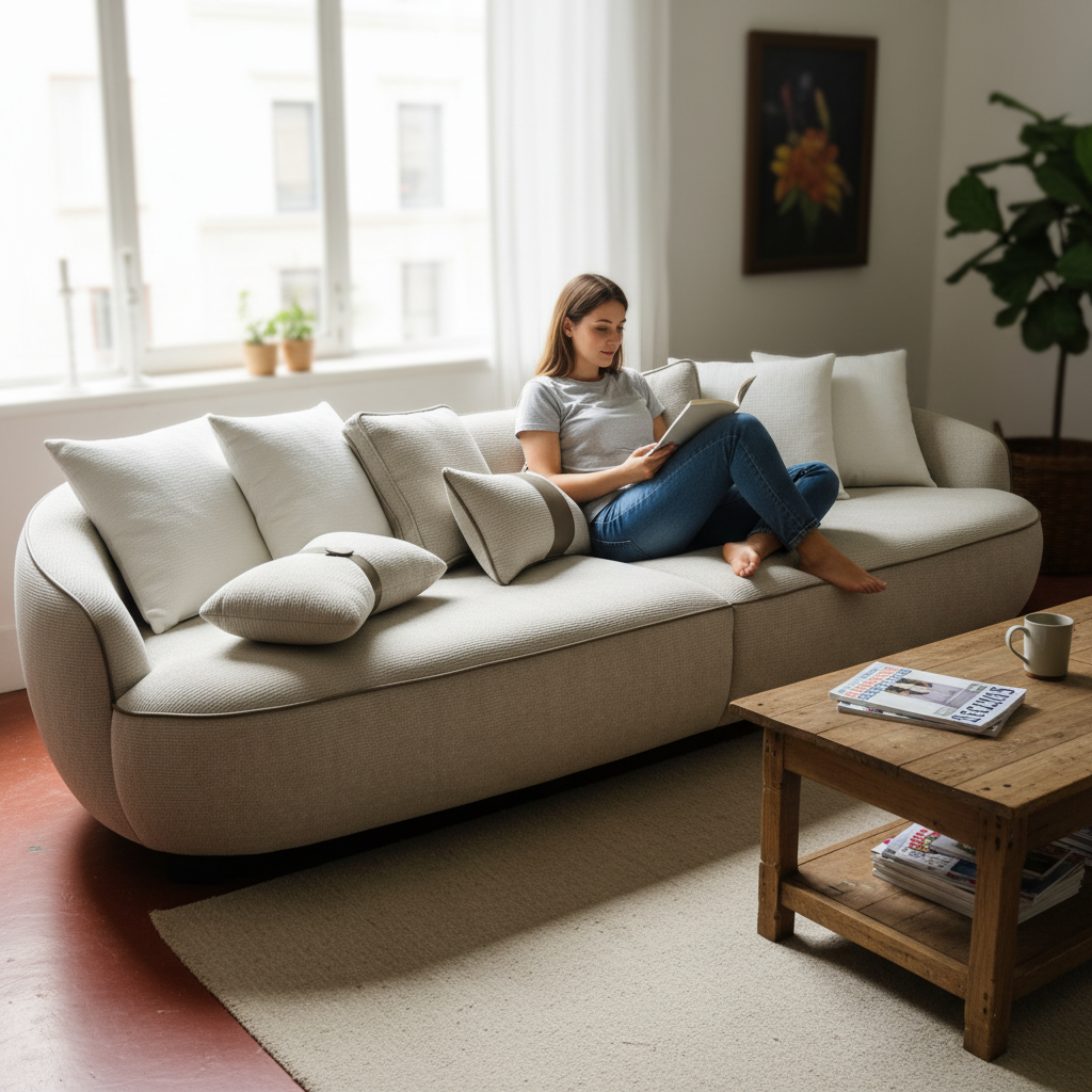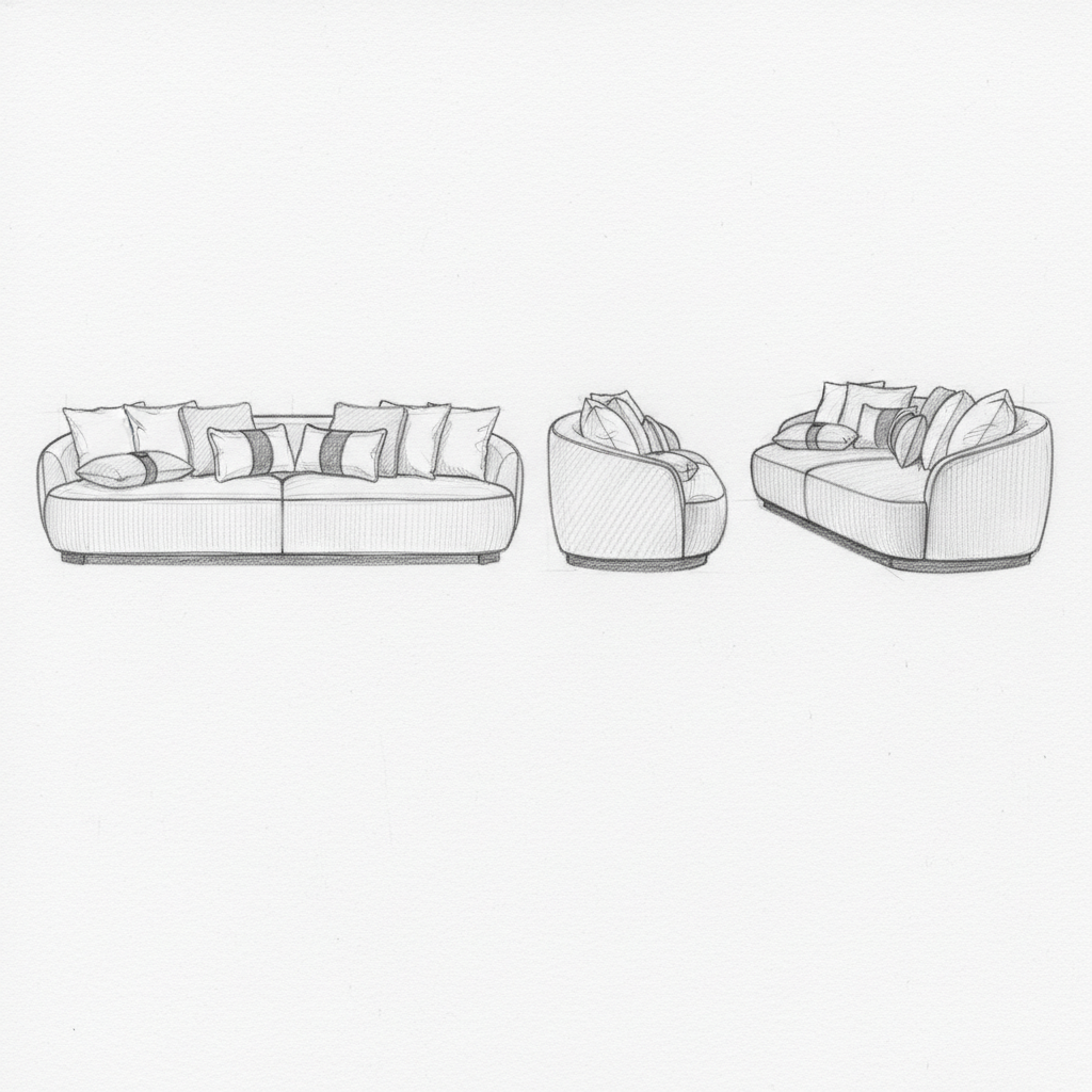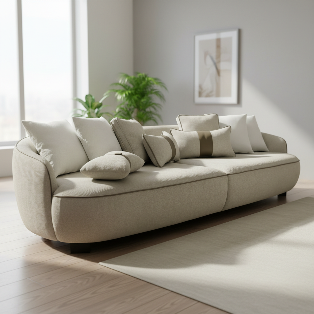 Sculptural Curved Sofa with Contrast Piping