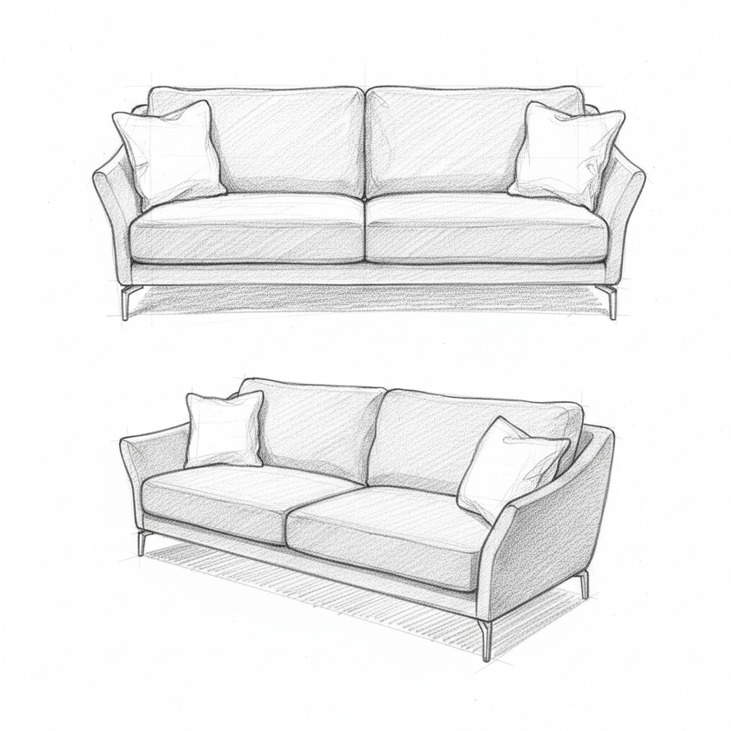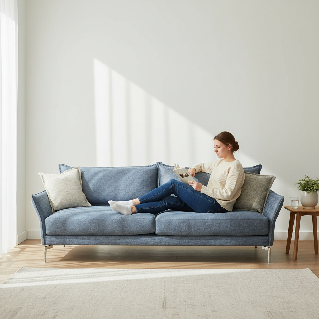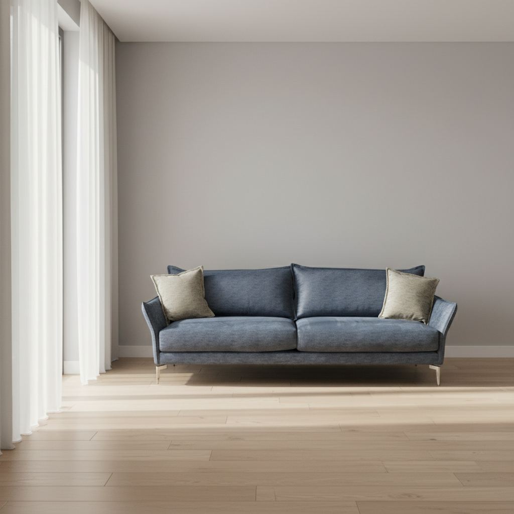 - Design: A contemporary linear sofa featuring a unique “flare” silhouette, where the backrest and armrests gently curve outward to create a dynamic and inviting modern profile.