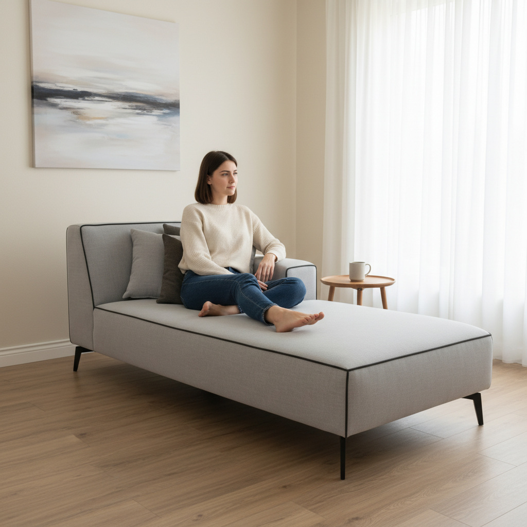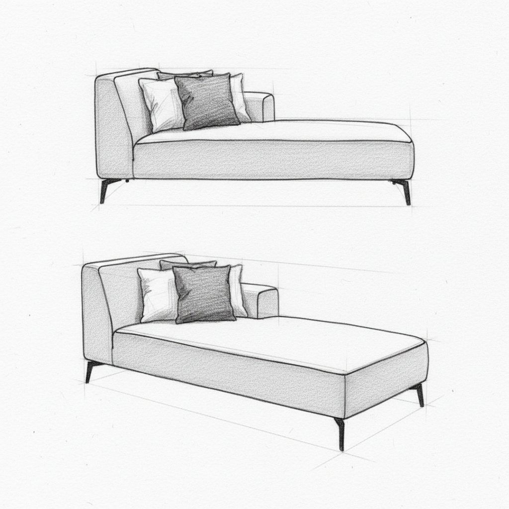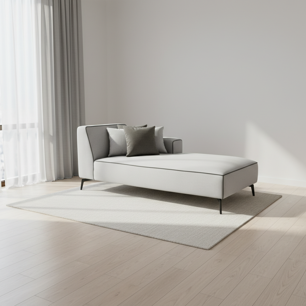 • Design: A contemporary, left-arm chaise lounge featuring a sleek, architectural silhouette with a single integrated track arm and a clean-lined reclining surface.